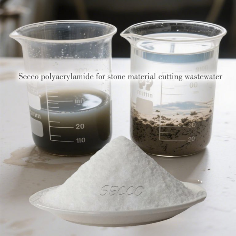Sommige steen afvalwater bevat organische verontreinigende stoffen of complexe componenten. Cationische PAM (zoals een moleculair gewicht van 8 miljoen en een ionengraad van 20%-30%) kan het flocculatie-effect verbeteren door ladingsneutralisatie. Een bepaald geval in Suzhou toont aan dat cationisch PAM een opmerkelijk effect heeft op de behandeling van opgeschorte vaste stoffen en ook een hulpeffect heeft op de rotatiesnelheid van snijmachines en het hergebruik van afvalwater.